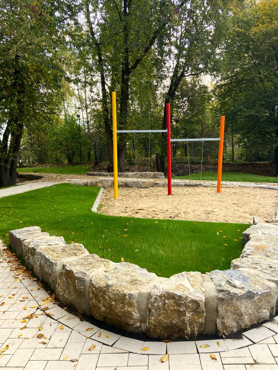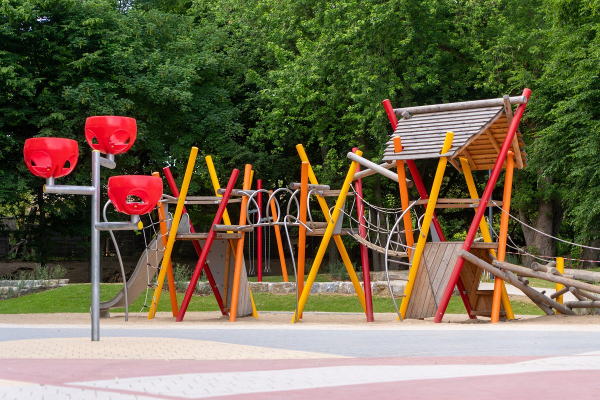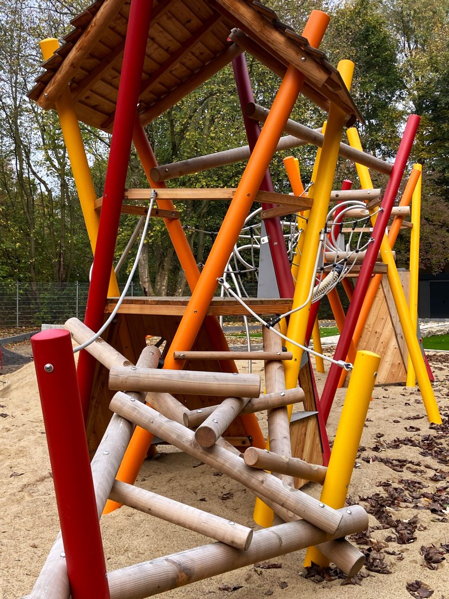 Die Hauptattraktion des neuen Schulhofes stellt das multifunktionale Spielgerät inmitten der großen Sandspielfläche dar. Es ist so ausgelegt, dass es den Kindern vom 1. Schuljahr bis zu den Viertklässlern Spiel und Herausforderung bietet und mit zahlreichen Kletter- und Balanciermöglichkeiten ausgestattet ist. Weitere geplante Spielgeräte sind eine Doppelschaukel, Reckstangen, ein Trampolin sowie ein grünes Klassenzimmer unter den Baumkronen nahe des Nordeingangs.